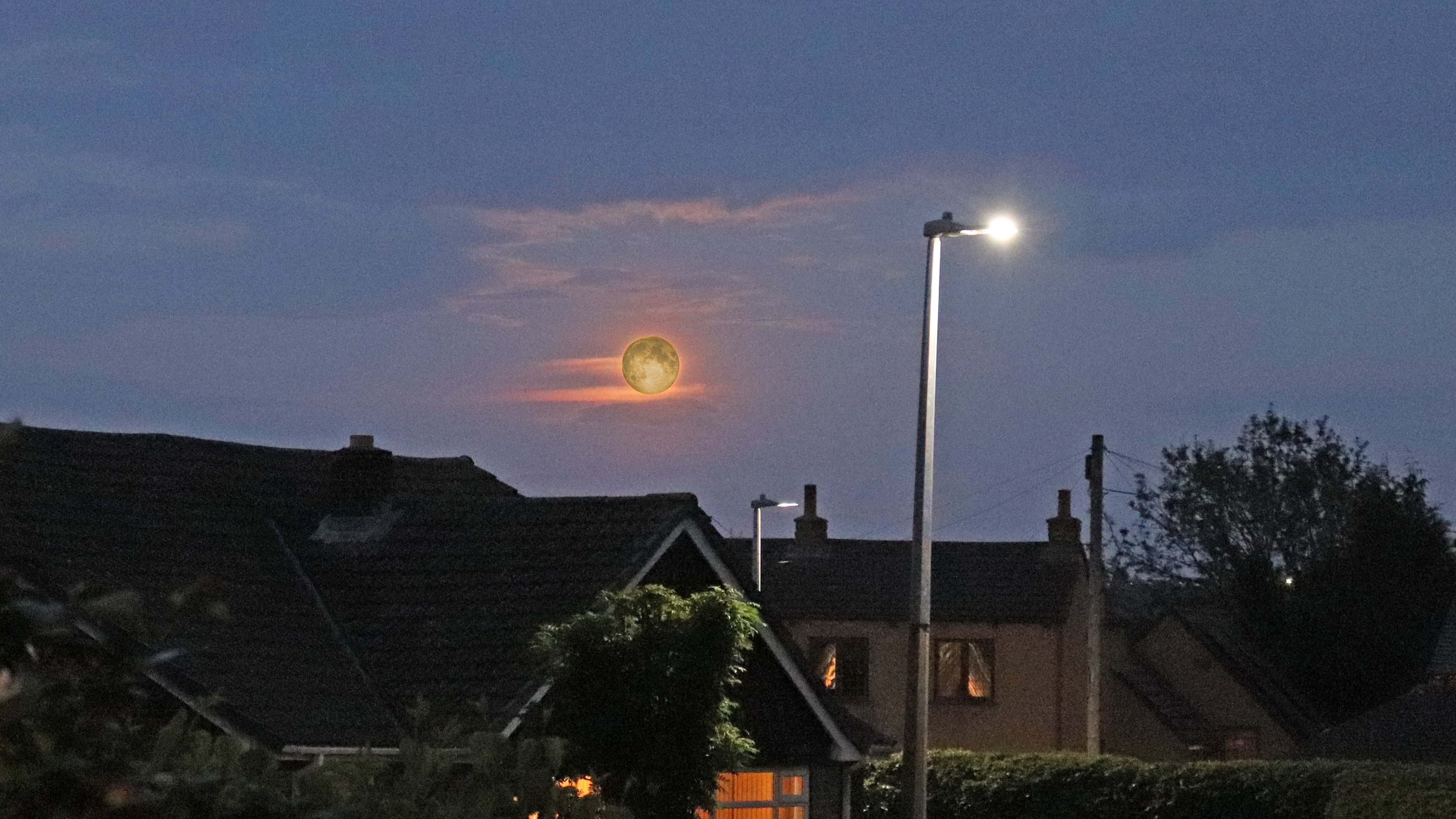 May 2020 was a good month for astrophotography. The “Supermoon” on 7/5/20 (appeared after the weekly clap for nurses) came out well although the colour of the Moon is rather suspect – sorry about that. At first the Moon in the picture looked just like the lamp – so I took another picture, an hour or so later, with the Panasonic through the Meade ETX and then spent many happy hours with GIMP and PhotoShop to reduce the image, colour it, make the background transparent and paste it onto the original photo.