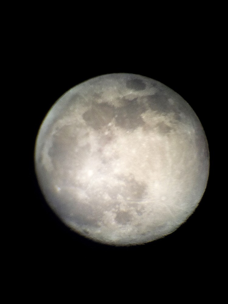 January 16’th 2022 – this is a budget photo of the full moon using a cheap mobile phone held up to the eyepiece of a 3″ Heritage Newtonian table top telescope.